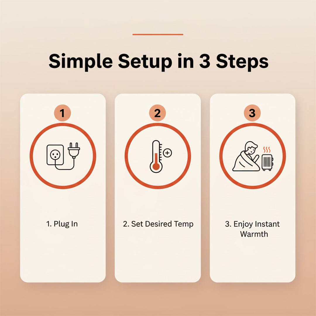 • Adjustable Thermostat: Set the desired heating level to suit your needs.