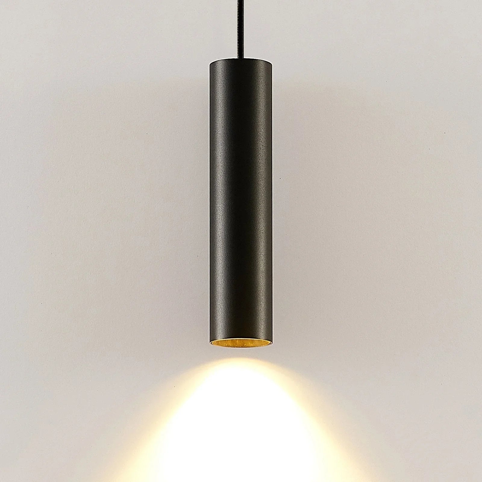 This pendant light features a slim, tube-shaped design crafted from black aluminium. Its interchangeable reflectors allow you to adjust the lighting effect, making it suitable for a range of interior styles and spaces.