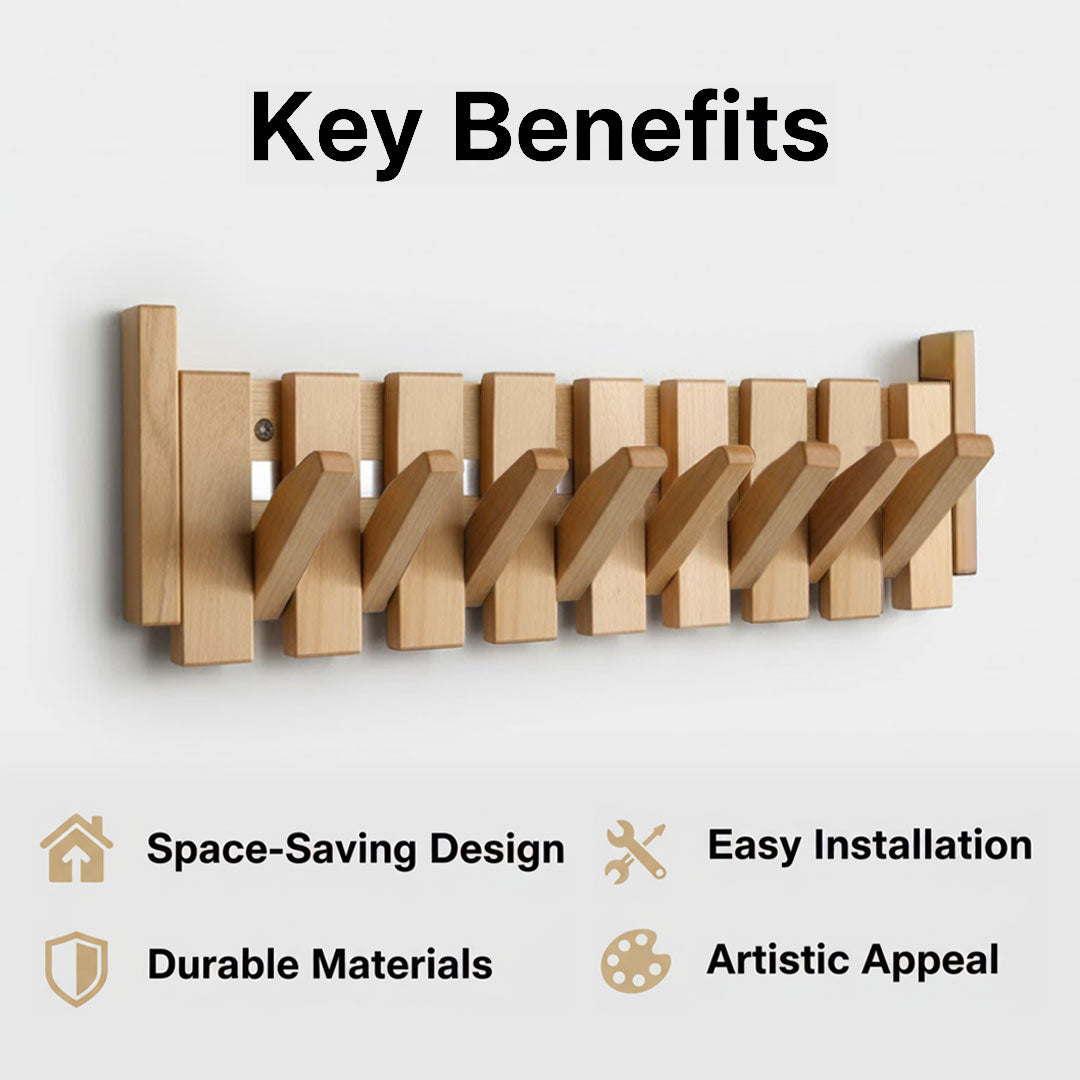 Wooden Coat Rack - Piano-Inspired Design - Multiple Hooks