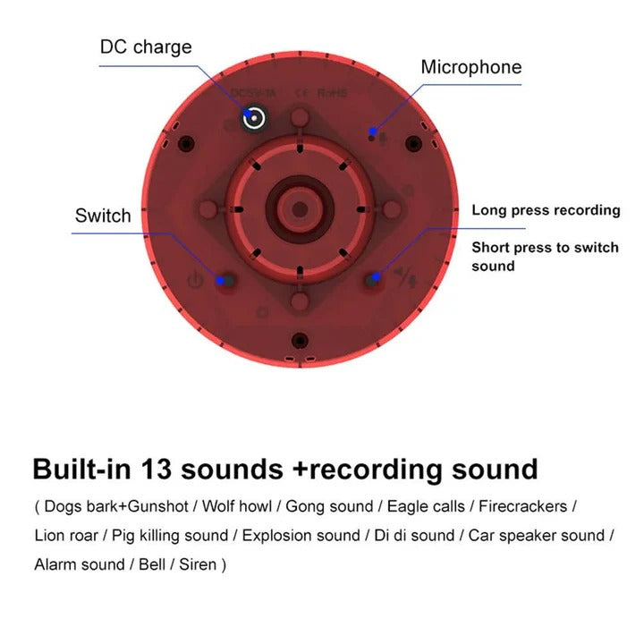 Sound Variations: Includes 13 different sound patterns for deterrence