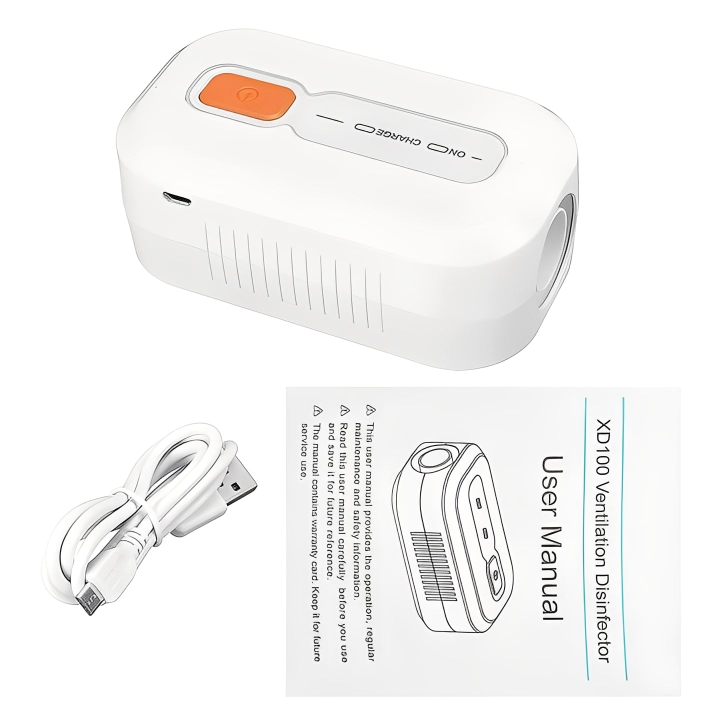 - Package contains: CPAP Cleaner and Sanitizer device, along with a USB charging cable.