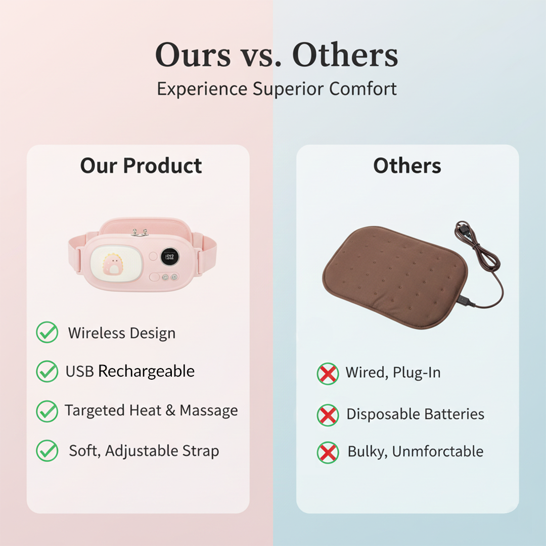 This heating waist band is lightweight and designed for portability, making it easy to use at home or on the go. Its USB charging capability offers convenience, ensuring that it can be recharged with ease whenever needed.