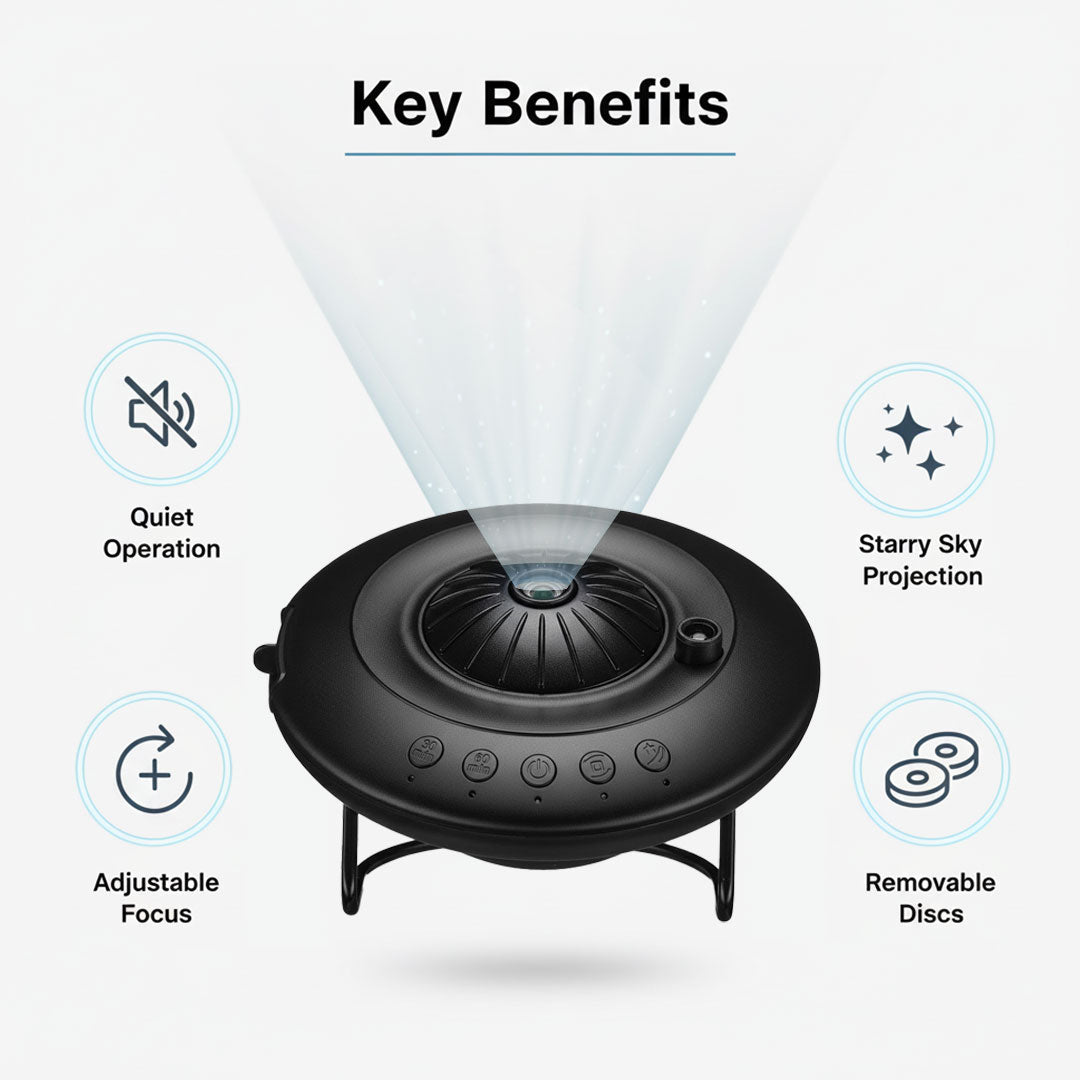 The Galaxy Projector operates silently, making it suitable for use in bedrooms or other quiet spaces. This feature may help create a peaceful atmosphere, allowing users to enjoy the starry display without any distracting noise.