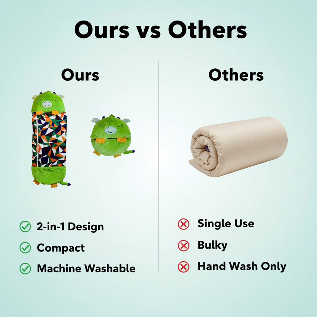 Dual Functionality: This product can easily switch from a sleeping bag to a plush toy, providing playful versatility for children.