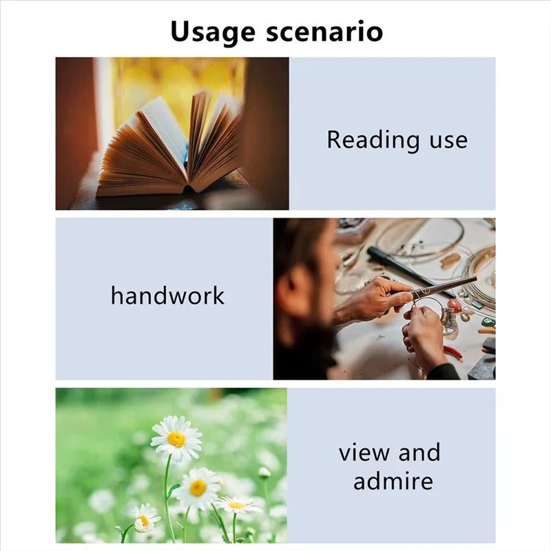 This magnifying glass is suitable for a variety of activities including reading, crafting, and sewing. Its adjustable features and integrated lighting may assist users in completing precision tasks with greater ease and efficiency.
