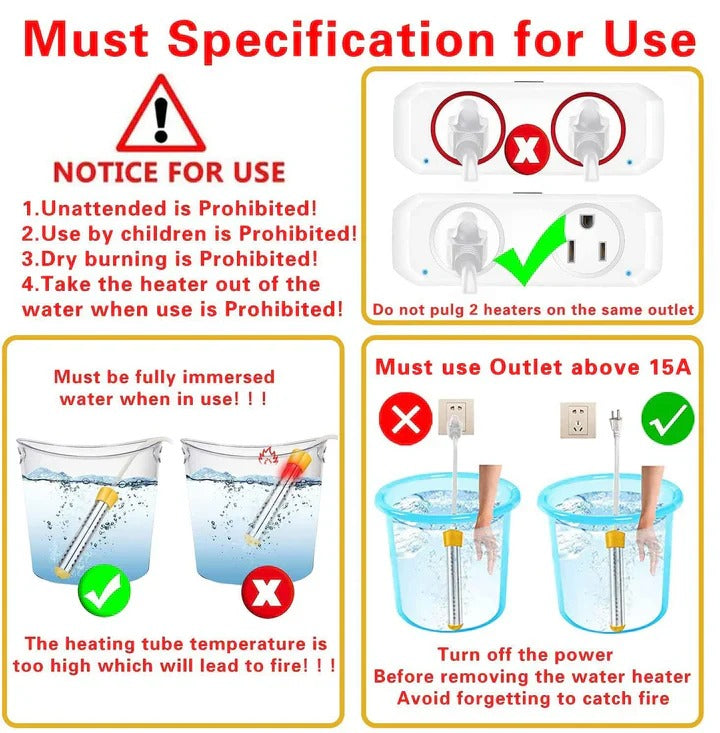 This portable immersion water heater is intended to quickly heat water in small containers such as buckets or basins. It may help provide hot water for cleaning, bathing, or outdoor activities, making it a versatile tool for different situations.