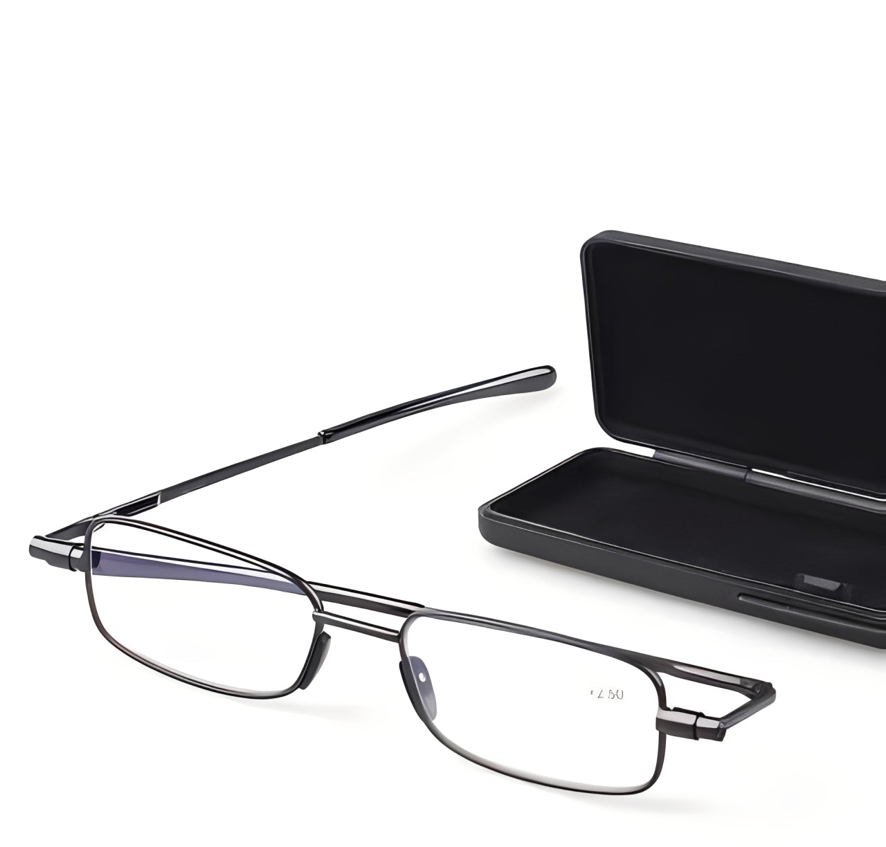 - Package contains: One pair of foldable reading glasses and a slim plastic carrying case.
