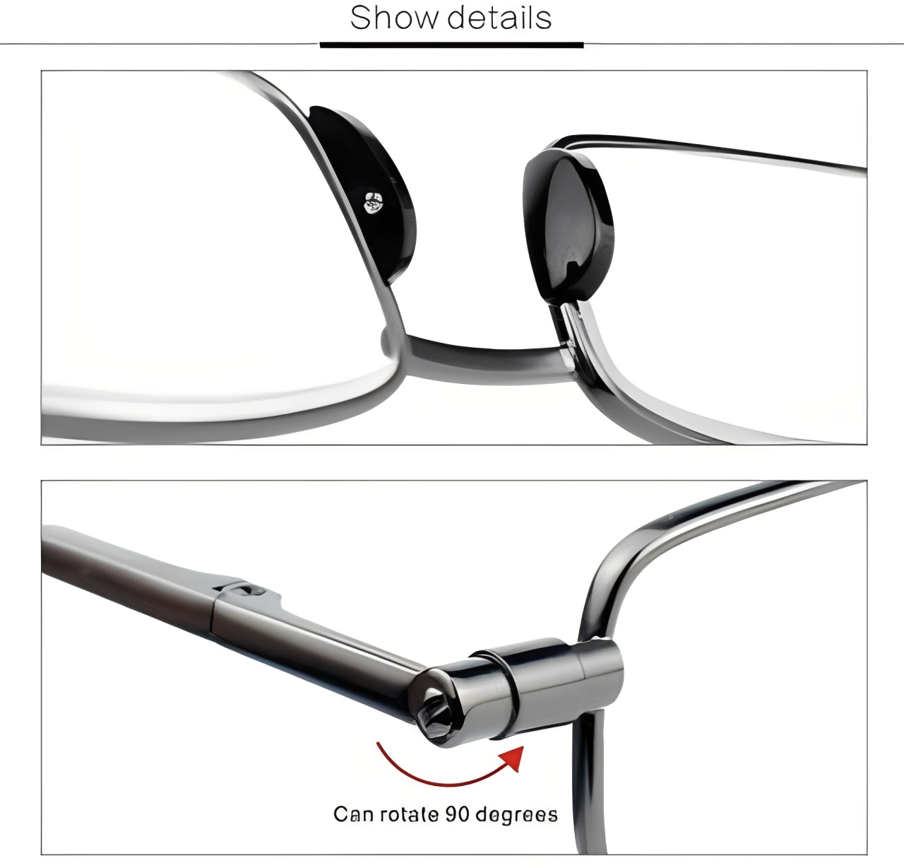 These glasses feature a unique 90-degree spring-loaded hinge that enables the frame to fold securely to a compact thickness. This design may help ensure ease of transport while maintaining comfort and stability during use.