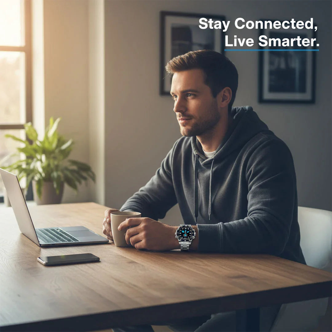 This smartwatch is designed to enhance your daily routine by providing Bluetooth connectivity. It may help you receive notifications for calls, messages, and applications directly on your wrist, keeping you informed without needing to check your phone frequently.